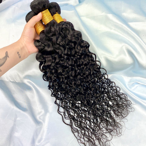 Water Wave 100% Human Hair 3 Bundles Natural Black