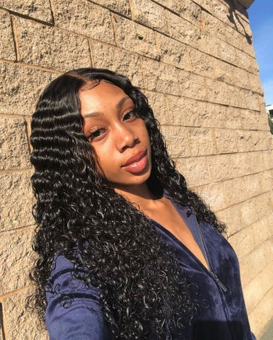 Deep Wave 100% cheveux humains 3 faisceaux avec 13x4 dentelle frontale noir naturel