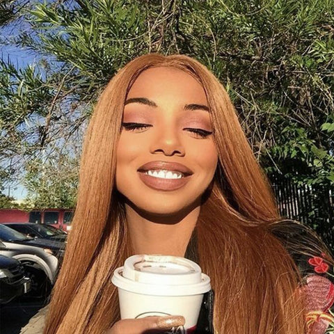 Perruque frontale en dentelle droite 13 x 4 brun roux